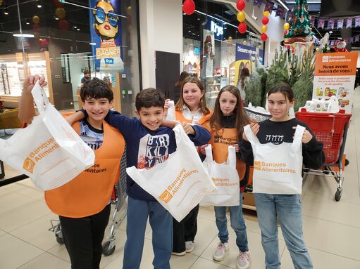 Banque Alimentaire. Nos élèves toujours partants pour aider ; citoyens et solidaires avec le sourire en plus ! BRAVO!